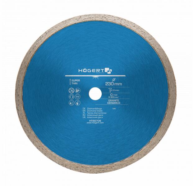 magas gyémántkoncentráció; szinter ezett vágóél; az optimális vágási sebesség és a penge tartósság tökéletes párosítása; sorjamentes vágás; stabil test az optimális körkörös mozgáshoz; a DIN 13236 szabvány szerint gyártva.