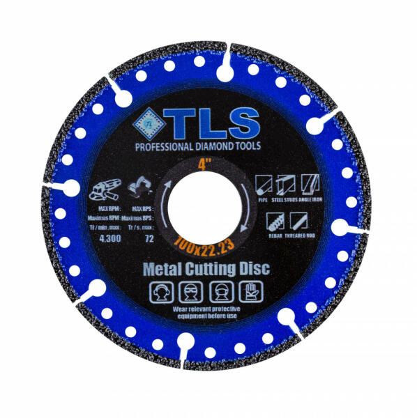 TLS METAL-PRO-3 gyémántszemcsés vágókorong fémekhez és általános vágási célokhoz Átmérő: d=200 mm Furatátmérő: d=25.4 mm/22.23 mm Vágószegmens magasság : 10 mm Vágó szegmens vastagság: 1.8/2.8 mm Alkalmazás: száraz Alkalmazási terület: szögvas, betonacél lemez, betonacél, koracél, alumínium, rozsdamentes acél, gránit, beton, kemény műanyagok, fa, márvány, ac