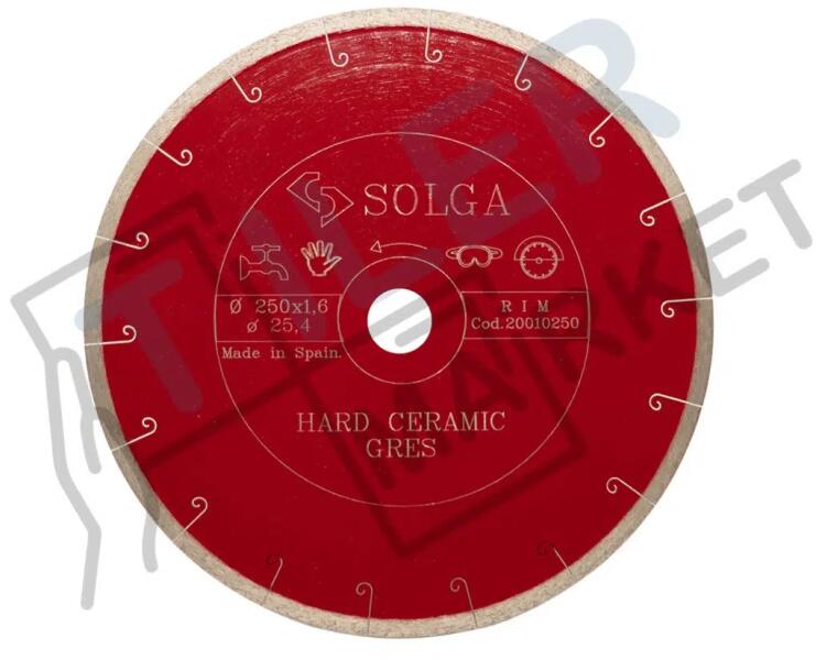 Átmérő 250 mm. Furat 25,4 mm. A szegmens magassága 7 mm.