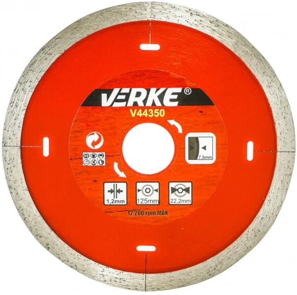 Professzionális korong, csempék vágásához. A gyémánt penge peremének különleges formája garantálja a gyorsabb vágási sebességet a legnehezebb anyagokban anélkül, hogy veszélyeztetné a felület minőségét. A készlet tartalmaz egy szűkítőt a belső átmérő csökkentésére. Cserép, kerámia, kőagyag, márvány és gránit burkolólapok vágására használható. A VERKE