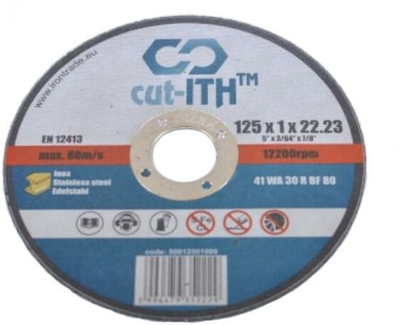 125mm-es, 1mm vastagságú vágókorong sarokcsiszolóra. Kifejezetten Inox, saválló, és rozsdamentes anyagok vágására. A biztonság jegyében, javasolt 12200RPM-es fordulatszámnál kisebb fordulatszámon használni. Biztonsági óvintézkedések gyanánt, használata közben javasolt a védőszemüveg és munkavédelmi kesztyű viselése, de inkább egy komolyabb vágásbiztos kesztű vise