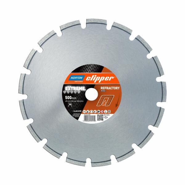 A Norton Clipper Extreme RC540 gyémánt vágókorongok széles hézaggal rendelkeznek a szegmensek között, ami még jobban megkönnyíti a tűzálló anyagok feldolgozását. Rendkívül tartós, lézeres hegesztéssel ellátott Norton Clipper Extreme RC 450 gyémánttárcsákat vizesvágó gépekhez tervezték, lehetővé teszik az oxidok vágását. Felhasználható: cirkónium-dioxid, szilí
