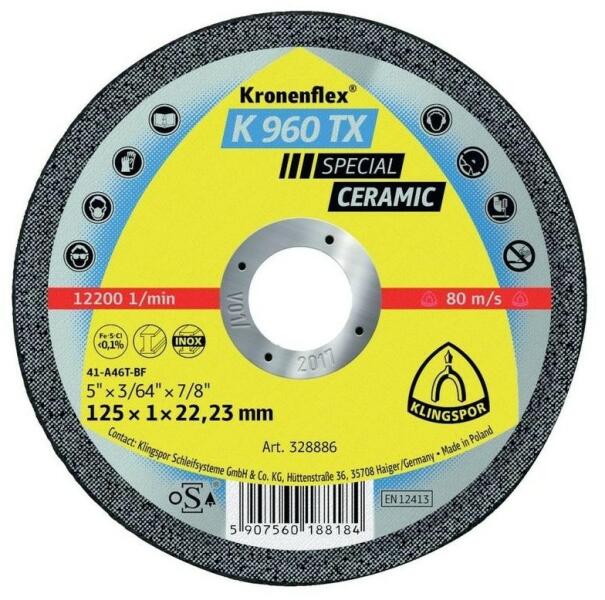 Előnyök: Vas-, kén- és klórmentes - Kimagasló teljesítmény a kerámia szemcsének köszönhetően csekély nyomóerő mellett is - 25 darabonként légmentesen záródó Kronenflex® Boxba csomagolva, amely biztosítja a hosszantartó teljesítményt és véd a nedvességtől Klingspor K 960 TX Vágókorongok Kerámia, 115 x 1 x 22,23 mm egyenes, 328885, Klingspor K 960 TX Vágókorongok K