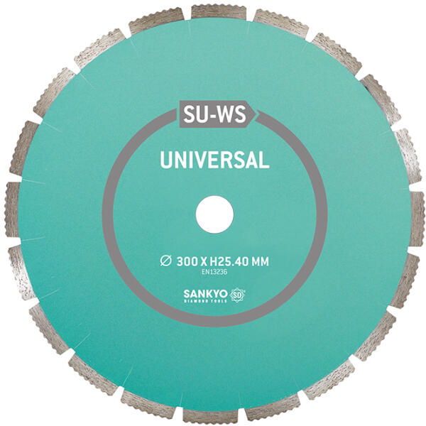 Termékjellemzők Műszaki adatok Tárcsa vastagság 3,2 mm Furatátmérő 25,4 mm Tárcsa átmérő 350 mm Leírás A szegmensek hullámosított kialakítása a merülő vágások kezdésénél optimális. Vízhűtéses Típus SU-WS Megnevezés Gyémánttárcsa általános építőipari anyagokhoz