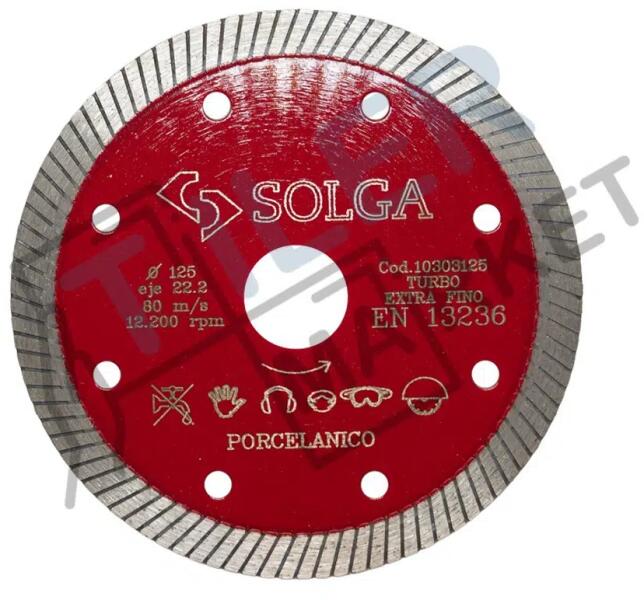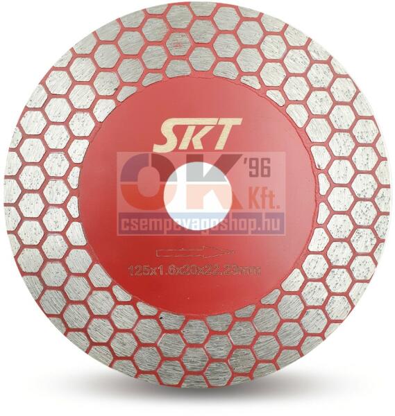 Gyémántpenge a legkeményebb anyagok, mint például gránit, rusztikus csempe, klinker, pala és porcelán, száraz vágásához. Átmérő: 125 mm; furat: 22,2 mm; szegmensmagasság: 10 mm; szegmensvastagság: 1,4 mm. Ref: 30987
