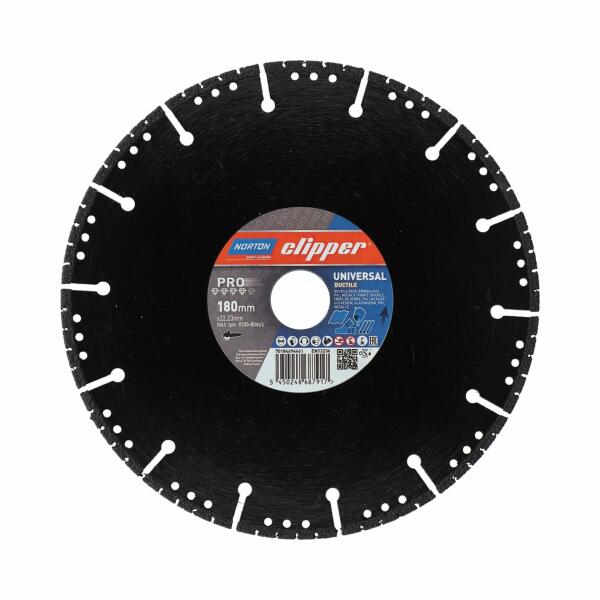 A Norton Clipper Pro Universal Ductile egy vákuumforrasztott többanyagú vágókorong, amelyet kifejezetten különféle anyagok száraz vágására terveztek. Ez az univerzális tárcsa sokféle felhasználásra alkalmas, beleértve az általános célú építőanyagokat, betont, aszfaltzsindelyt, PVC-t, agyaggal és üvegszállal erősített gyantát, korlátozott mennyiségű fát, gömbgraf