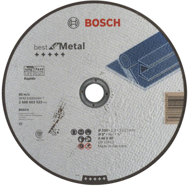 Főbb jellemzők:átmérő:230mm csiszolóany ag:alumínium-oxidbefogatás:22.23mmanya ga:bakelit erősítésselA kötés erőssége:S-erősségvastagsága:2,0mmm árka:MTXEAN4044996141893