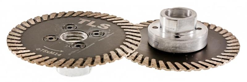 TLS CARVING MINI gyémánt vágó-, faragó-, és csiszolótárcsa Átmérő: d=75 mm Furatátmérő: M14 menetes 40 mm hosszú karima (leszerelhető) Vágószegmens vastagság: 2.1-2.2 mm Alkalmazás: száraz és vizes használat Alkalmazási terület: Gres, kőporcelán, kemény kerámiák, gránit, márvány, csempe, kemény anyagok, tégla, egyéb építőipari anyagok, stb. TLS CARVING MINI g