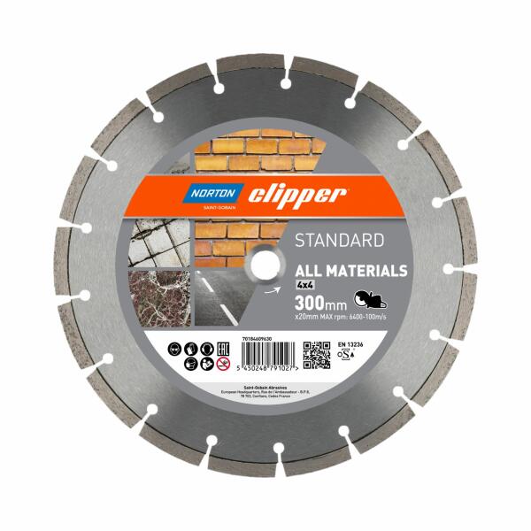 A Norton Clipper Standard All Material 4x4 egy kiváló minőségű vágókorong, amelyet kifejezetten különféle építőanyagokhoz terveztek. Lézerrel hegesztett gyémánt szegmenseik jellemzik, amelyek nagy tartósságot és teljesítményt biztosítanak. A vágókorongot különféle szerszámokhoz, például sarokcsiszolókhoz, kézi csiszolókhoz, aljzatvágókhoz és asztali fűrészekhe