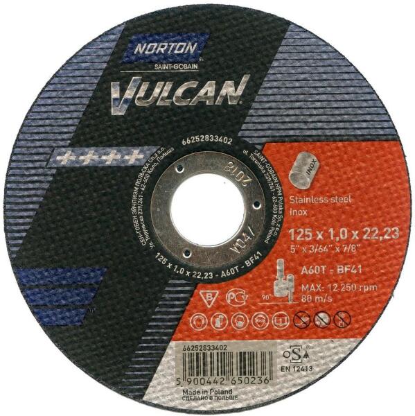 Norton Vulcan A60T-BF41 vágókorong rozsdamentes anyagokhoz.