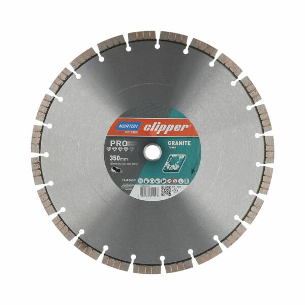 A Norton Clipper Pro Granite Turbo egy kiváló minőségű vágókorong, amelyet kifejezetten gránit és kemény kövek vágására terveztek. A tárcsa nagy pontosságú lézeres hegesztési eljárással készül, ami robusztus és megbízható konstrukciót eredményez. A szegmensek magassága 12 mm, ami nagyon hosszú élettartamot eredményez. A szegmensek hullámos formája jelentősen csö