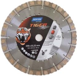A Norton TIGER BETON gyémánt vágókorong egy lézerrel hegesztett gyémánt tárcsa, amelynek szegmensmagassága 15 mm és lyukakkal rendelkezik a hordozó jobb hűtéséhez, sarokcsiszolók általános építési termékei számára száraz és nedves használatra. Felhasználás: általános építőanyagok, mint például beton, betoncsövek, szegélyek, poroton, mészhomok tégla, ytong, te