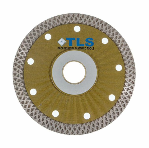 TLS S-PRO TURBO ultravékony gyémánt vágókorong Átmérő: d=105 mm Furatátmérő: d=22,23 mm Vágószegmens magasság : 10 mm Vágó szegmens vastagság: 1.3 mm Alkalmazás: száraz és vizes használat Alkalmazási terület: Gres, kőporcelán, kemény kerámiák, gránit, márvány, csempe, kemény anyagok, tégla, egyéb építőipari anyagok, stb. TLS S-PRO TURBO ULTRAVÉKONY GYÉMÁNT V