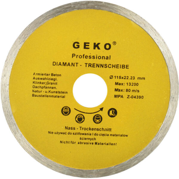 A professzionális gyémántlemez beton, gránit, vasbeton, márvány és egyéb kemény építőanyagok vágására szolgáló, folyamatos profilú . A termék jellemzői: átmérő - 115 mm rögzítő furat - 22,2 mm a töltés magassága 8 mm magas gyémánt koncentráció