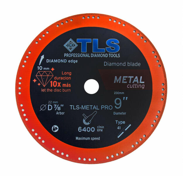 TLS METAL-PRO-3 gyémántszemcsés vágókorong fémekhez és általános vágási célokhoz Átmérő: d=180 mm Furatátmérő: d=25.4 mm/22.23 mm Vágószegmens magasság : 10 mm Vágó szegmens vastagság: 1.6/2.6 mm Alkalmazás: száraz Alkalmazási terület: szögvas, betonacél lemez, betonacél, koracél, alumínium, rozsdamentes acél, gránit, beton, kemény műanyagok, fa, márvány, ac