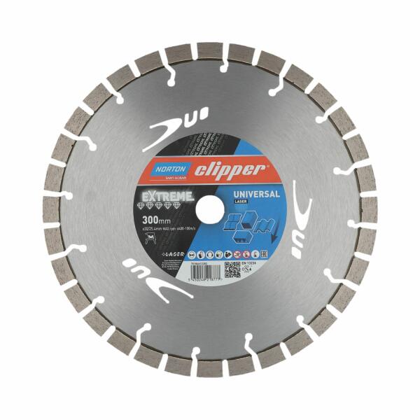 Az Extreme Universal laser tárcsa nagyon gyorsan vágja a puha és kemény építőanyagokat, nagyon hosszú élettartammal. 15 mm magas szegmensek a rendkívül hosszú élettartamért és az építőanyagok még gyorsabb vágása érdekében. A duó-koncepció két trapéz alakú szegmenssel kiváló vágási sebességet és nagyon kényelmes vágást, valamint alacsony rezgéseket tesz lehető