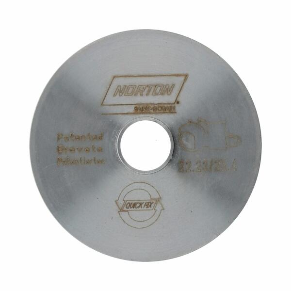 A szabadalmaztatott NORTON "Quickfix" segítségével nagyobb furatátmérőjű gyémánttárcsák is használhatók kisebb tengellyel rendelkező gépeknél. Gyémánttárcsák 25,4 vagy 22,23 mm furattal a 20 mm-es tengellyel rendelkező gépekhez. Ez a furatcsere teljesen biztonságos (az EN 13236 szerint tanúsítva) és bármikor visszavonható. A "Quickfix" rendszer tehát a hatalmas idő me