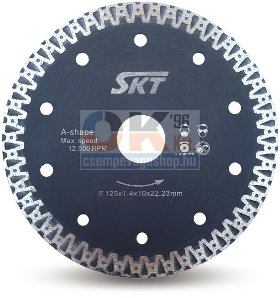 Műszaki adatokTárcsa vastagság 3,2 mmFuratátmérő25,4 mmTárcsa átmérő350 mmLeírásAz egyik legnépszerűbb univerzális gyémánttárcsa, ami használható beton, térkő, tetőcserép, természetes kő és gránit vágásához. Száraz használatra is alkalmas de vízhűtéses használat esetén növeli a tárcsa élettartamát. TípusSPARTAN MegnevezésGyémánttárcsa általános ép