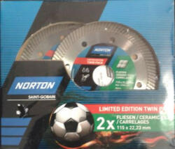 Norton CEE Ceramic Tiles gyémánt fűrészlap betonszegély- és járdalapok, betontömbök, agyagtéglák és szilikátok vágásához. Szegmentált szinterezett tárcsák 115, 125, 180 és 230 mm-es méretben kaphatók. Felhasználás: megkeményedett beton, kemény klinker, kerámia tetőcserép, homlokzati tégla, vasbeton, beton járólapok, beton csövek/szegélyek, járólapok, mészkő be