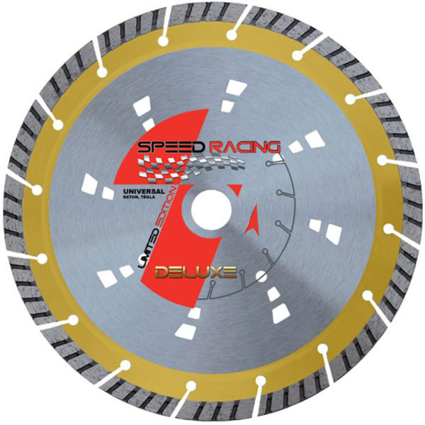 Univerzális gyémánttárcsa No. 9 Speciális szegmensek, turbo vágóél Hűtési lyukakkal az alaplapon Univerzális gyémánttárcsa, építőipari használatra, tégla, beton, mosott beton és más általános építőipari anyag vágásához Száraz vágás Szegmensmagasság: 12 mm