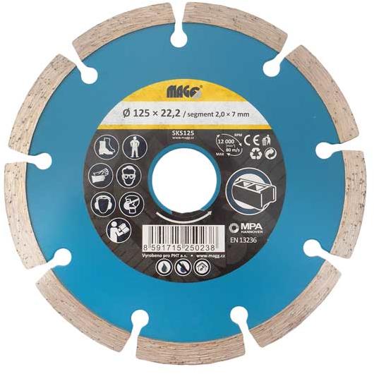 Gazdaságos tárcsa, mely az építőipari alapanyagok széles palettájára alkalmazható. Általános célú, száraz és vizes vágásra egyaránt használható Kiemelten ajánlott kőműveseknek Akár benzines darabolókon is használható