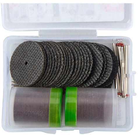 lehet használni: 404116, 404122 és 404111-hez is! max. 32.000 ford/-perc Tengely: 3,2×38 mm × 5 db Vágókorongok: hálós: O32 mm × 25 db ultra vékony O24 mm × 70 db műanyag dobozban