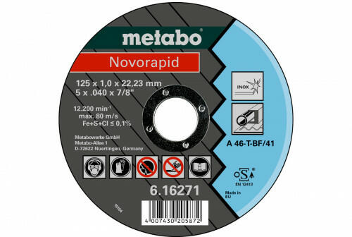 Leírás:- Novorapid minőség: nagy teljesítményű kezdő osztály - Vékony darabolótárcsák rozsdamentes, vékony falú anyagok - csövek, lemezek, profilok, drótok, stb. - megmunkálásához, valamint általános fémmegmunkáláshoz - Jó vágásteljesítmény hosszú élettartammal - Keménység: kemény - Csekélyebb anyagfelhasználás, erőtakarékos, csekélyebb mértékű gépterhe
