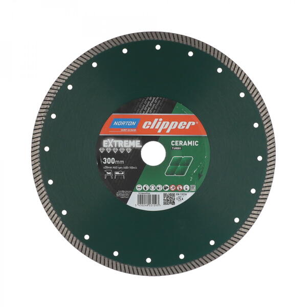 A Norton Clipper Extreme Ceramic Turbo gyémánt vágókorong kiváló ár-teljesítmény arány jellemzi. Ez a turbó gyémánt vágótárcsa ultravékony acélmaggal rendelkezik, amelyet gyors száraz és nedves vágáshoz terveztek. Előnye, hogy a vágási folyamat során csekély az anyagveszteség. A tárcsát kifejezetten kézi elektromos gépekhez és csempevágókhoz való használatra te