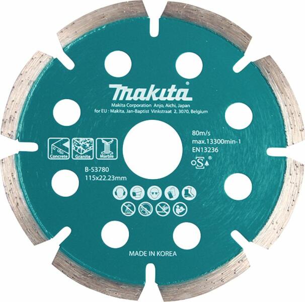 A magas vágási sebesség mellett a hosszú élettartam jellemzi Felhasználási terület: száraz vasbeton vágás, gránit, természetes kövek Az egyedi kialakítása és az oldalszegmenseknek köszönhetően extra stabilitás és hűtés jellemzi Átmérő: 450 mm Furat átmérő: 25,4 Szegmensek: 3,6 x 10