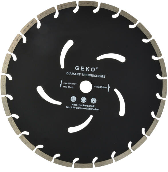 A termék jellemzői: Ideális márvány, gránit, kő és járdák, beton, tömb, tégla és falazat számára A több hűtőlyukkal ellátott mag hűvösebben tartja a pengét, és segíti a hígtrágya eltávolítását a súrlódásmentes vágás érdekében Nagy koncentrációjú gyémánt a hosszú élettartam érdekében Műszaki adatok: Korong típusa: szegmentált Pengeátmérő: 350 mm L
