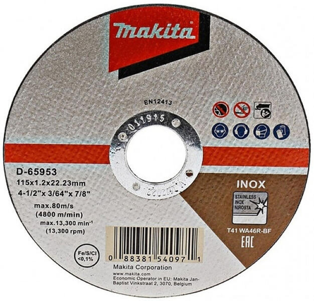Műszaki adatok: ; Alkalmas: Inox ; Tá;rcsaá;tmé;rő: 115 mm ; Tá;rcsa vastagsá;g: 1,2 mm ; Furatá;tmé;rő: 22,23 mm ; Maximá;lis fordulat/perc: 13.300 /perc