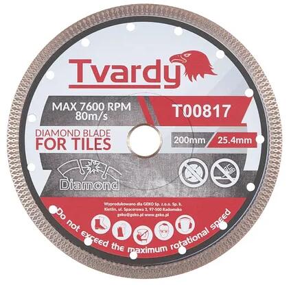 Professzionális gyémánt vágótárcsa greshez a Tvardy márkától. A tárcsa zárt profilú, bordázott peremmel rendelkezik , és kemény anyagok vágására alkalmas, mint például: porcelán gres, márvány, cserép, gránit, homokkő, kvarc . A gyémánt vágótárcsa 200 mm átmérőjű és 1,4 mm vastag . 10 mm magas és 1,8 mm vastag gyémántszórással rendelkezik . A termék jellemz