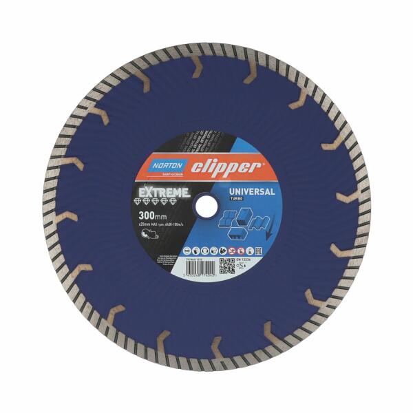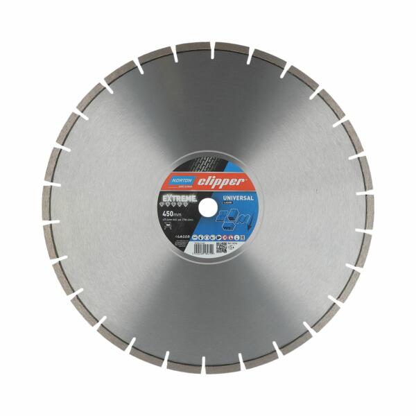 A Norton Clipper Extreme univerzális gyémánt vágókorongot a közepes és nagy keménységű építőanyagok gyors és kényelmes vágására hozták létre. Jellemző tulajdonságai: a 12 mm-es impregnált gyémántszegmensek nagyon hosszú élettartamot biztosítanak, magas szintű felhasználói biztonság, a kopás csökkentése nyíl alakú bevágásokkal, melyek védik az acélmagot, val