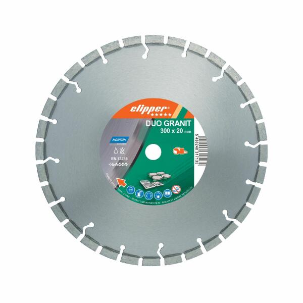 A DUO-alakú trapéz szegmensek kiváló vágási sebességet biztosítanak a kezelő számára a lehető legjobb vágási kényelem érdekében. Innovatív specifikáció, amelyet kifejezetten kemény anyagok, például gránit és természetes kövek vágására terveztek. Exkluzív nyíl alakú üreges nyílásokkal, amelyek jelzik a helyes forgásirányt. Gránit és természetes kövek vágá