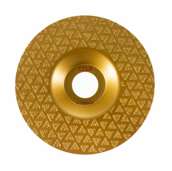 TLS VACUUM TRIANGLE gyémántszemcsés csiszolótárcsa Átmérő: d=115 mm Alkalmazás: száraz és vizes Szegmensvastagság: 2.4-2.5 mm Szegmensmagasság: 25 mm Szemcseméret: közepes ( #40/45 ) Alkalmazási terület: Gránit, márvány, beton, műkő, sírkő, kerámia, természetes kövek, különböző üvegek, szaniter áruk, tégla, néhány fémáru mint például alumínium vagy rozsdame
