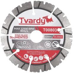 Professzionális gyémánt vágótárcsa a Tvardy márkától. A szegmentált profilú tárcsa építőanyagok, mint például beton, vasbeton, tégla, kő, járda, tetőcserép, márvány, gránit, homokkő, aszfalt vágására alkalmas. A gyémánt vágótárcsa 125 mm átmérőjű és 1,4 mm vastag . A gyémánt réteg 13 mm magas és 2,4 mm vastag . A termék jellemzői: Professzionális gyém