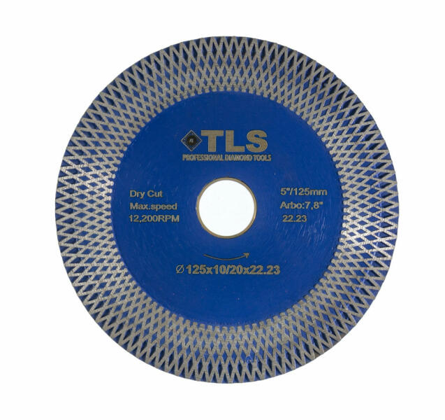 TLS W-PRO TURBO ultravékony 10/20 szegmenses 2 oldalas gyémánt vágó- és csiszoló korong Átmérő: d=125 mm Furatátmérő: d=22,23 mm Vágószegmens magasság : 10 mm egyik oldalon és 20 mm a másik oldalon Vágó szegmens vastagság: 1.6 mm Alkalmazás: száraz és vizes használat Alkalmazási terület: Gres, kőporcelán, kemény kerámiák, gránit, márvány, csempe, kemény anyagok,