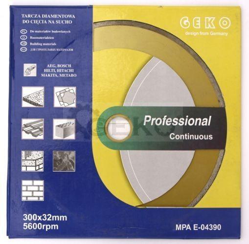 A professzionális gyémántlemez beton, gránit, vasbeton, márvány és egyéb kemény építőanyagok vágására szolgáló, folyamatos profilú . A termék jellemzői: átmérő - 300 mm szerelési furat - 32 mm a töltés magassága 8 mm magas gyémánt koncentráció