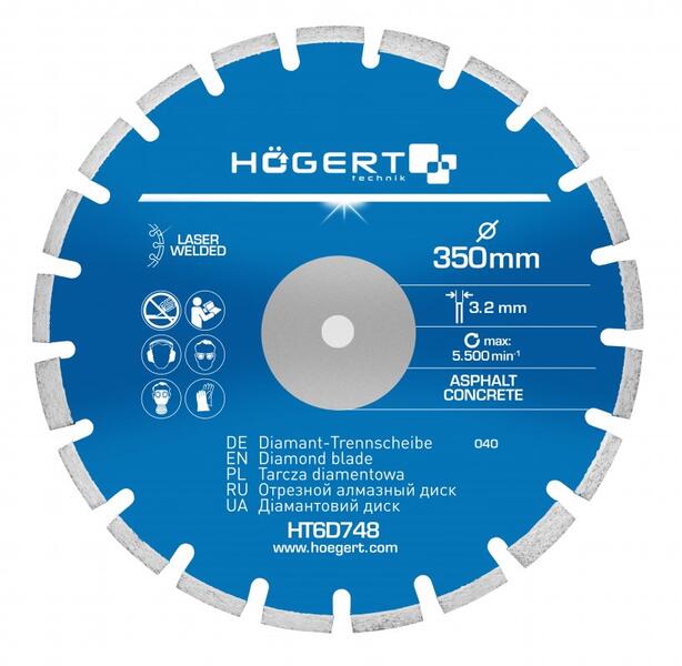 magas gyémántkoncentráció aszfalt és beton vágására alkalmas; az optimális vágási sebesség és a penge tartósságának tökéletes beállítása; a test kiváló minőségű acélból készült az optimális körkörös mozgásért és a penge rezgésének csökkentéséért; alacsonyabb energiafogyasztás; kiváló minőségű lézerhegesztett gyémántszegmensek, amelyek kiváló mi