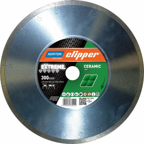 A Norton Clipper Extreme Ceramic Soft-ot úgy fejlesztették ki, hogy megfeleljen a porcelán burkolás egyre növekvő népszerűségének, különös tekintettel a hagyományos lapoknál vastagabb és nehezebb csempékre. Csak nedves használatra tervezték. Az Extreme Ceram Soft vizesvágó vagy csempevágó gépekhez való használatra készült. Minél nehezebb anyagot vág, annál lágyabbna