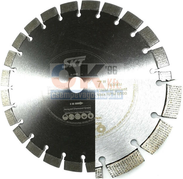 Mindenféle beton, tégla, tetőcserép, abrazív anyagok és vegyes aszfalt vágására. Kitűnő választás olyan aszfalt vágására, amely alatt előfordulhat, kő, beton stb. Átmérő: 300 mm