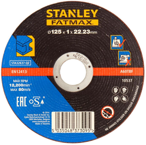 Lapos acélvágó ragasztott tárcsa Átmérő: 125 mm Furat: 22 mm Vastagság: 1,0 mm...