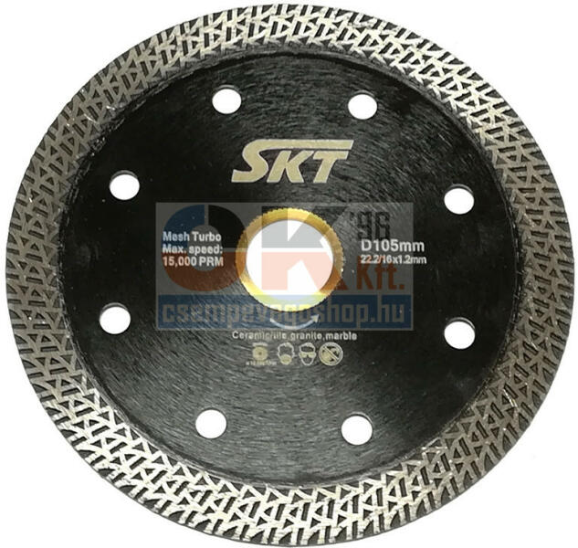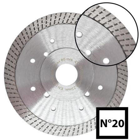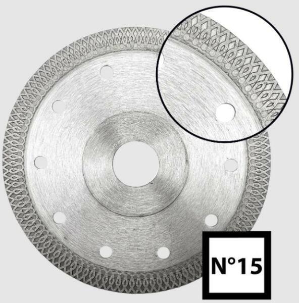 Gyémánttárcsa No. 17 Folyamatos vágóél, egyedi élgeometriával, gyors és tiszta vágásExtra vékony tárcsa (1,4+/-0,2 mm)Furaterősített alaplapKiválóan alkalmas gres (kőporcelán), kemény kerámialapok, gránit, cotto lapok, terazzo és porcelán vágásáhozSzáraz és vizes vágáshoz egyaránt javasoltSzegmensmagasság: 11 mm