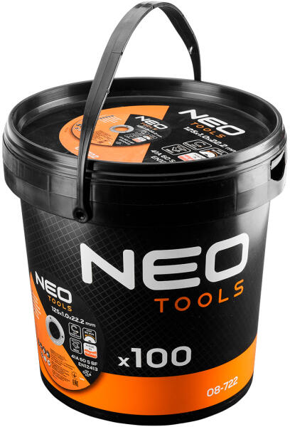 NEO vágókorong fémhez, 41 A 60 S BF -125 x 1,0 x 22,2 STAHL/INOX, 100 darabos csomagban . A 41 A 60 S BF vágókorongokat 125 mm átmérő, 1 mm vastagság és 22,2 mm-es rögzítőfurat jellemzi. Max. fordulatszám: 12 200/perc. Ajánlott acélhoz, rozsdamentes acélhoz . Ideális mind professzionális, mind hobbiszerű használatra.