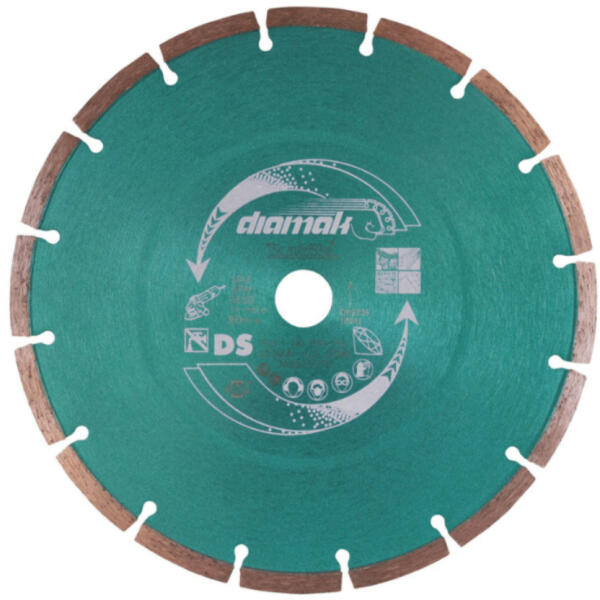 Kiváló minőségű gyémántvídiás vágótárcsa különböző építőipari anyagok vágására. Ajánlott nagyobb szilárdságú anyagok vágására mint például beton, tégla, cserép. A szegmentált gyémántvágók kialakításuknak köszönhetően jobb lehűlési teljesítménnyel rendelkeznek, kevésbé hajlamosak túlmelegedésre nagy szilárdságú anyagok vágása esetén. Átmér