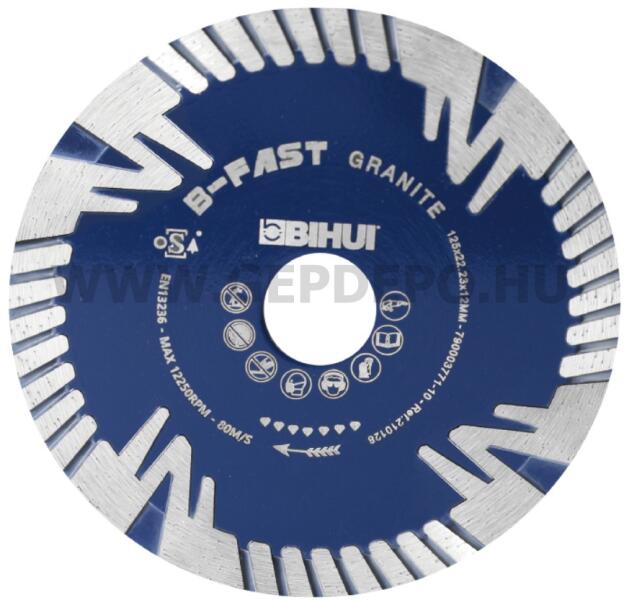 Bihui Gyémánttárcsa gránithoz, márványhoz 12/125/2,4 mm Innováció és minőség, ezzel a két kulcsszóval lehet jellemezni a BIHUI szerszámokat melyeket professzionális szerelők számára fejlesztettek ki. A világszerte jelenlévő Bihui arra törekszik, hogy a burkoló- és építőipari szerszámok és gépek világában széles spektrumon kínáljon praktikus szerszámokat, melyek