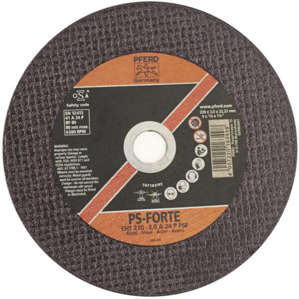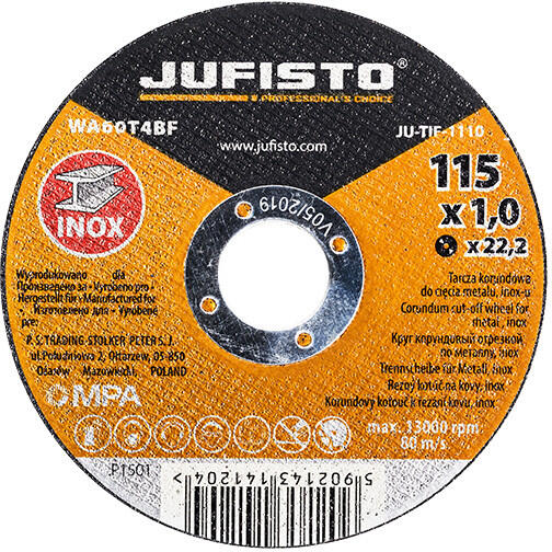 A Luga Abrasiv fém darabolótárcsa 115mm átmérőjű M14 (22,2mm) tengelyméretű szerszámokkal kompatibilis, sarokcsiszolók karimájára szerelhető. A vágótárcsa normál 14A osztályú elektrokorundumból készül, megerősítéssel ellátott bakelit-ligandum alapon. Fémfelületek ...