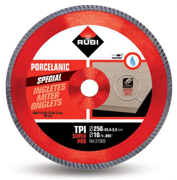 Rubi TPI 250 SuperPro gyémánttárcsa vizes vágáshoz (250 mm): Vizes vágáshoz javasolt, különösen porcelán lapokhoz. Magas vágási sebesség.