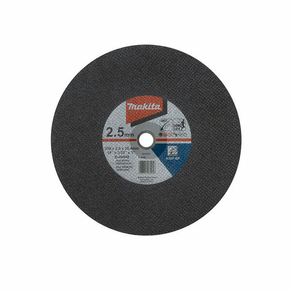 Átmérő (D):355 mm Vastagság: 2,5 mm Furat mérete: 25,40 mm Szemcseméret: A36P