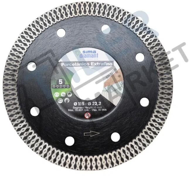 SIMA gyémántpenge, amelyet kifejezetten vékony és tiszta száraz vágásokhoz terveztek. Átmérő: 115 mm. Furat: 22,23 mm. Szegmensmagasság: 10 mm. Szegmensvastagság: 1,4 mm. Ref: R-6902115